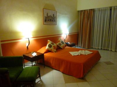 Pokoj byl velmi prostorný, zařízení bylo moderní, laděné do oranžovo-béžové barvy. Byl vybaven menší manželskou postelí, centrální klimatizací, balkonem nebo terasou, telefonem, lednicí s denně doplňovanou 1,5 l vodou, trezorem. V tomto hotelu bylo napětí 220V a zásuvky, u kterých nebyl třeba adaptér.