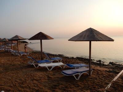 Pláž písčitě-kamenitá, pozvolný vstup do moře, perfektní, že je to přímo pár metrů od hotelu