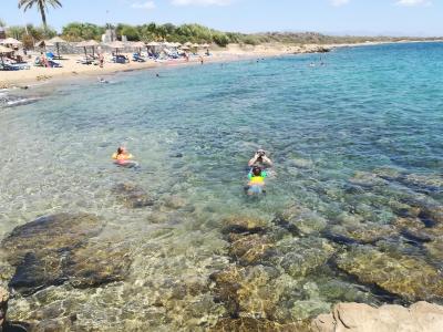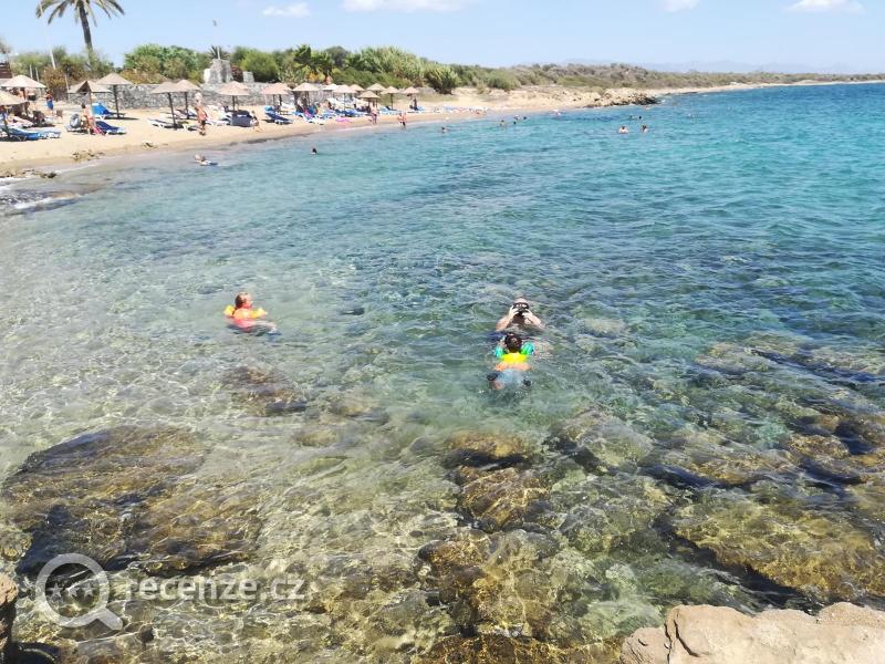 Moře krásně čisté, plné ryb. K šnorchlování s malými dětmi ideální. Pláže písečné, písek je hrubý. Vstup do vody pozvolný, kousek dále od břehu velké balvany a skály. Nijak nebezpečné či ostré. Moře dopoledne klidné, odpoledne vlnky. Pláž personál ráno uklízel, ale jižanská nátura je prostě jiná než u nás a turisti jsou navíc prasata. Co jsme ale ocenili je, že ani u bazénů a ani na pláži nebylo třeba nijak rezervovat lehátka ručníky atd. Ať jsme přišli kdykoliv, vždy bylo místo a volno.Pláž je nevelká, ale dostačující. Vzhledem k pustině okolo nehrozí, že by se zde objevil někdo jiný, než klienti hotelu.