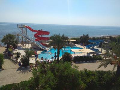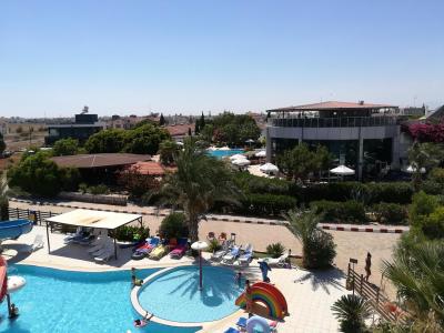 Personál ochotný, ale málo početný. Okolí bungalovů je pěkně udržováno. Bázen s hloubkou cca 2 m je přímo mezi nimi. Za barem je dětské brouzdaliště a bazén s tobogány. Zde se děti opravdu vyřádili a fronty na tobogánech rozhodně nebyly.