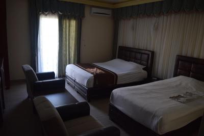 Ač jen SGL, dostal jsem pokoj s klasickým dvoulůžkem + jedním samostatným, které bylo ale jen o 30 cm užší, než celé dvoulůžko, takže volba jasná. Klimatizace je ale umístěna tak nevhodně, že proud vzduchu jde přes hlavy postelí - tohle optimální není. Zcela schází nějaká židle, 2 velká křesla typu krychle v podstatě nejdou ani moc přemístit - zbývající prostor okolo je již těsný. Efektivně působí varná konvice se 2 (pro trojlůžák) šálky a 2 skleničkami - vodu + kávu/čaj si ale musíte zajistit sami a jelikož je do hotelu striktně zakázáno donášet potraviny zvenčí, kdoví, jak to bylo myšleno.