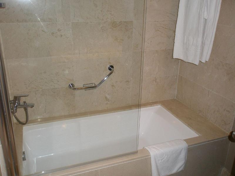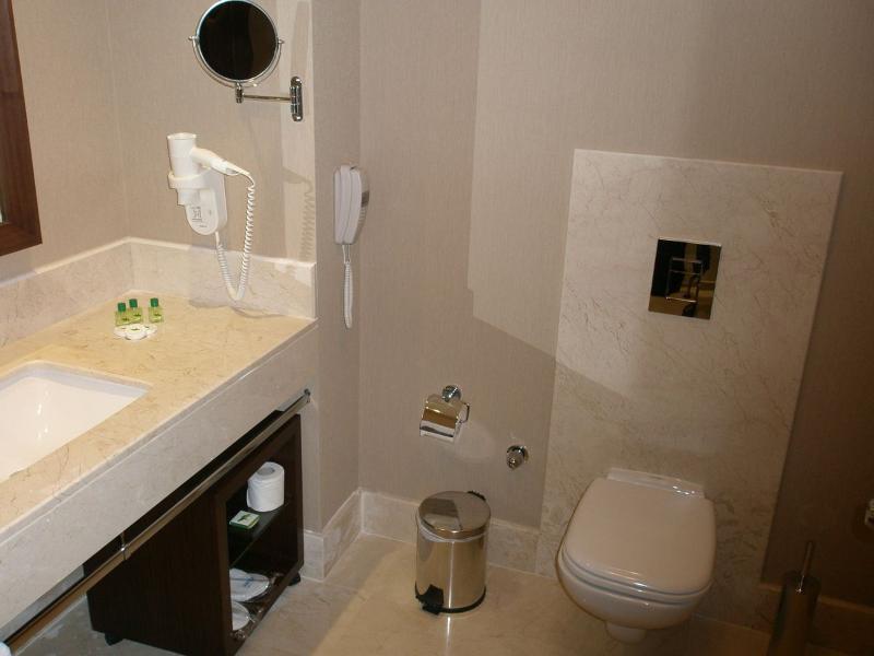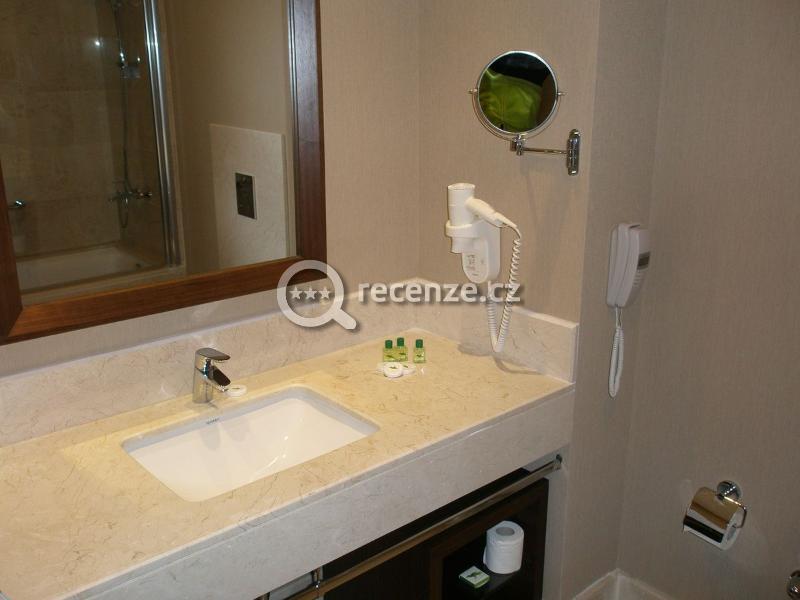 Ubytování odpovídalo 5*. Moderní až luxusní. Bydlela jsem v jedné z hlavních budov, ale viděla i pokoje v bungalovech. Koupelna s vanou nebo sprchou, fén, šampóny, mýdla, ručníky, klimatizace, trezor, minibar/lednička (nápoje za poplatek), TV, telefon, WiFi za poplatek, postele, křesílka, stoleček, balkon s posezením (některé pokoje výhled na moře, některé do zahrady). V hotelu je celkem 470 pokojů, z toho 262 hotelových pokojů a 208 bungalovů. Hotelové pokoje byly za příplatek. Všude bylo čisto a vonělo to novotou... Snad to tak vydrží i nadále :-)
