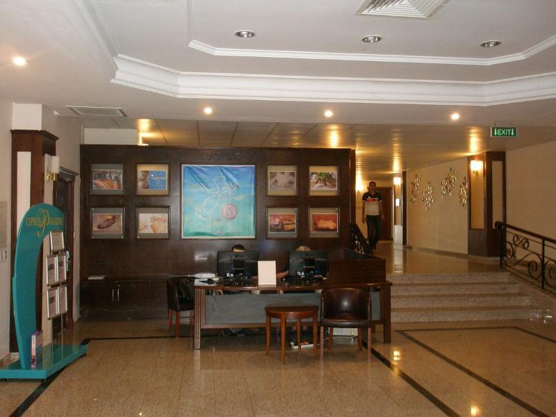 Recepce v hlavní budově, internet koutek, velký venkovní bazén s aquaparkem v rozlehlé zahradě pár metrů od pláže, vnitřní vyhřívaný bazén, turecké a finské lázně, jacuzzi, bar s krbem, sauna, za poplatek masáže a welness centrum, animační programy, dětský klub, prádelna, lékař na telefonu, casino. restaurace byla prostorná - posezení jak uvnitř tak venku na terase s výhledem na moře - moc hezké. Je tam také English pub, open air disco bar, posezení u recepce a terasa nad bazénem. V hotelu dále fitness centrum, tenisové kurty, volejbal, basketbal, stolní tenis, šipky. Vodní motorové sporty za poplatek. Mají zde i velké konferenční centrum.