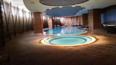 Velký venkovní bazén s obsluhou, lehátka a osušky zdarma,vnitřní bazén, sauna, turecké lázně, posilovna, kadeřník, masáže.Na pokoji vana, sprcha, WC, fén,varná konvice, čaj,káva a voda