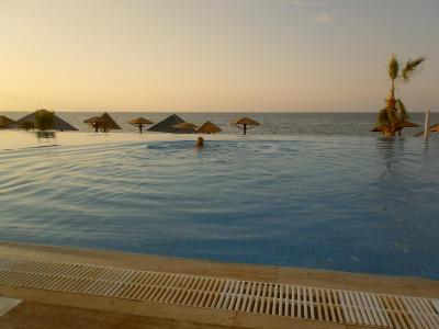 Na pláži dostatek lehátek a slunečníků,bar, velký bazén(chlór).Od hotelu k pláži podchod pro pěší (je tu rušná silnice).Písčitá pláž.Co jsme se bavily se spolucestujicími,tak naše pláž byla TOP i strava :). Vodní sporty jsou k dispozici na odlehlé pláži.