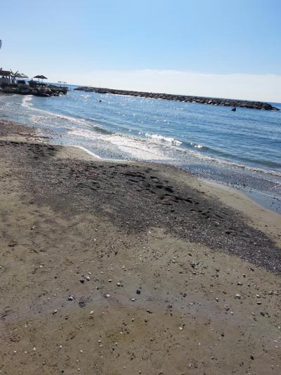 Plaz je vulkanicka, cize cierny piesok a primes kamienkov, nam to vadilo iba trosku