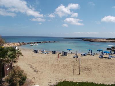 Nachádza sa kľudnejšej časti medzi Agya Napa a Proterasom. Obe miesta sú vzdialené od hotela cca 20 minút chôdze.