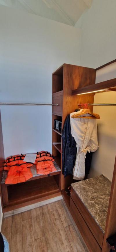 Ubytování jsem měla v mezonetovém bungalovu, kde dole byl obyvák a koupelna, nahoře pak ložnice. Velmi pěkné a prostorné ubytování.