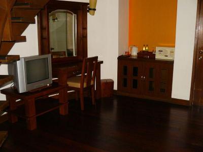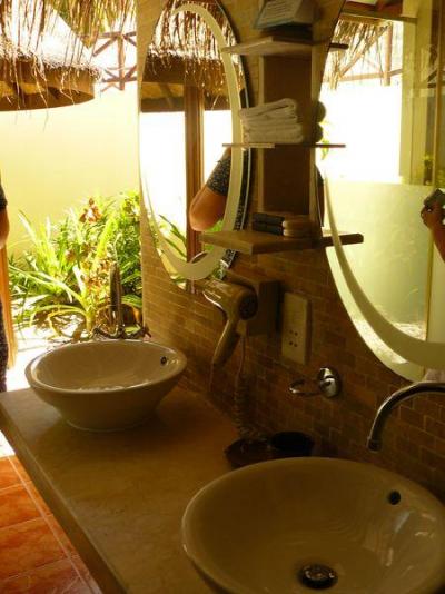 Resort má celkově asi 225 pokojů a ubytování je možné v několika typech. My jsme bydleli v tzv. beach vile. Vila vypadala jako ptačí hnízdo. Byla patrová, s tím, že v prvním patře byla pouze ložnice. V přízemí byla obytná místnost s ledničkou, tv..a velkou napůl venkovní koupelnou. Vše bylo čisté a pěkné.
