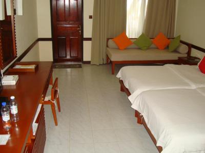 Velké, čisté pokoje ve vilkách. Jsou zde i nádherné vodní bungalovy a suity.