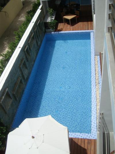 Nový třípatrový hotel na menším ostrůvku Thinadhoo. Velmi pěkné, moderně zařízené pokoje, menší bazén.Transfer lodí z Malé asi 90 minut. Pláž je asi 250m od hotelu, velmi příjemný majitel i personál hotelu s vlastním diving a water sport centrem. Nabídka všech možných lodních výletů a vodních sportů, včetně vodních skútrů, nočního rybaření či šnorchlování se žraloky...