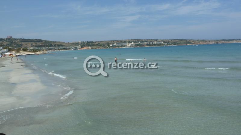Na pieskovú pláž sa dostanete prechodom cez komunikáciu pred hotelom. Vstup do mora je pozvoľný.
