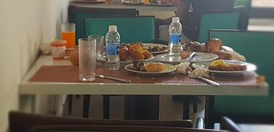 Jídlo studené, víno teplé. Kultura stravování místních obyvatel katastrofální. Kočky na stole a na židlích během večeře. Opatlané příbory, talíře i sklenice. Neuklizené jídlo ze stolů, zbytky na židlích i na zemi. K dispozici pouze 4 druhy ovoce. Sklenice skleněné výjimečně, spíše plastové, na baru u baru plastové kelímky.