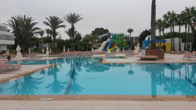Jedná se o pěkný hotel, který je nově po rekonstrukci a udělá na vás opravdu ten správný dovolenkový dojem. Hotelový komplex jak má být. Najdete zde pěknou vstupní halu, otevřené výtahy, bary a místo pro večerní program, který můžete sledovat z terasových chodeb vedoucí k pokojům. Prostorům jako takovým dáváme 100%. To stejné platí pro pokoje. Všechny jsou pěkné, nové a moderní, s plochou TV, kde hraje pár arabských a francouzských programů. Pokojová služba uklízela každý den. Když jste nechali nějaký dolar na posteli jako bakšiš, tak byl úklid ještě kvalitnější. Bakšiš chtějí mimo jiné skoro všude a pobyt si s ním určitě vylepšíte. Na pokoji máte terasu, koupelnu spojenou s WC, minibar (docela drahý, s programem all inclusive nemá cenu využívat) a trezor – za ten se taky platí. Trezor jsme nepoužívali a z pokojů se nám nikdy nic neztratilo. Celkově jsme se cítili v hotelu bezpečně. I když je Maroko rozvojová země, v hotelu byla k nalezení i Wi-Fi. Zatím jen na specifických místech. Tato místa vám prozradí personál hotelu nebo je poznáte tak, že uvidíte chumel lidí s tablety a telefony v ruce. Jednotlivé pokoje byly buď s výhledem na město – parkoviště, s výhledem na bazén nebo s výhledem na moře. My dostali pokoj s výhledem na parkoviště, tzv. standart. Zašli jsme na recepci a začali trochu smlouvat za lepší výhled. Recepční chtěl nejdříve za výměnu 100EUR, pak jsme to stáhli na 35EUR a hned měli výhled na moře. Někdy jde toto vybrat hned při rezervaci, někdy ne. Záleží i na kapacitě obsazenosti. V hotelu s námi bylo i pár Čechů, se kterými jsme se však potkávali minimálně. Ubytování bychom dali celkem 90%.