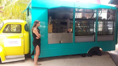 Formou all inclusive, menšie občerstvenie je možné aj vo,, Fast food Truck", v ktorom nájdete hamburgery,panini a podobne. Hotel má vlastnú zmrzlináreň.K dispozíciíí sú 2 reštaurácie, jedna z nich je na pláži a 2 bary.