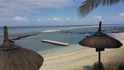 Kousek dále pěšky se dá jít i na veřejnou pláž jsou vždy čisté a uklizené, sem tam potulující se psi - na Mauriciu toto je standardem.