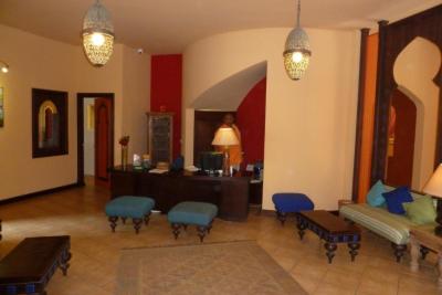 Menší ale útulný Boutique hotel v marockom štýle leží priamo na krásne pláži s jemným bielym pieskom. Pôsobí veľmi útulne.Teplé farby a prírodné materiály dotvárajú príjemný pocit.