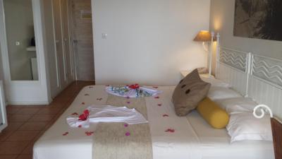 Hotel disponuke 60 izbami, väčšina z nich má výhľad na more. Ubytovanie je v 1 -poschodových budovách. Izby sú pekné, čisté,klimatizované, majú terasu.