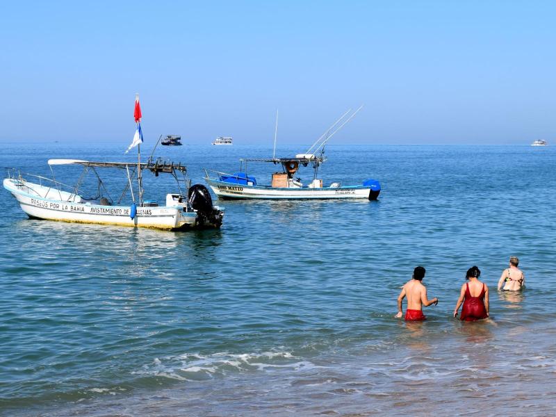 Podloží je písek, střední zrnitosti - ovšem spád do moře je dost prudký a hned pod střední hranou příboje (je to sice zátoka, ale široká a tedy v podstatě otevřený Tichý oceán) je pás kamení, od velikost dlaně až po házenkářský míč a neustálý příboj má tak silný /zpětný/ proud, že zpočátku podrazí nohy skoro každému. Červené vlajky jsou vyvěšeny stále, to ovšem neznamená, že do vody nesmíte - jen nemůžete čekat žádnou asistenci v případě potíží. Zde to mají vymakané, jsou 2 ohraničení bójkami - prvá hranice je jen cca 5-6 m od břehu (ovšem už zdaleka nestačíte), zde se pohyb normálně toleruje (stejně jde z 50 % o přítomné Čechy), ve druhém pásu, až cca 25 m se mohou pohybovat zkušení plavci - je vhodné se předem domluvit s "dozorčím". Paradoxně zde již nejsou vůbec žádné vlny....