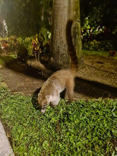 Jste v džungli o to více zvířátek - leguáni, nosálové....Není problém bud taxi, nebo colektivo a zajet si kam chcete. Procházky mimo rezort ...nic není jen silnice, ale rezort je natolik rozlehlý, že si mašinkou uděláte výlet po celém areálu a je to super.