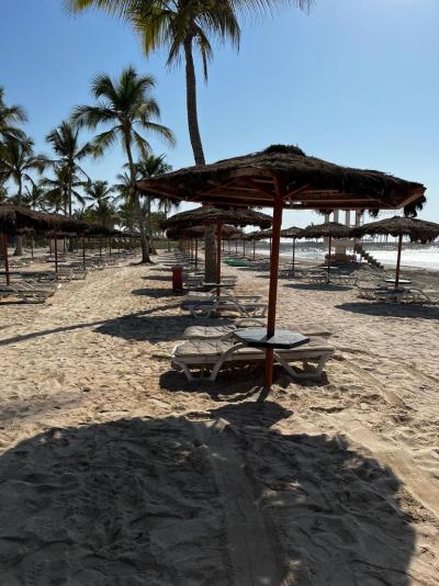 Pláž čistá, vstup do moře pozvolný. Lehátek dostatek, občas jsme byli na pláži sami jen s plavčíkem - prý začíná sezona. Co mě překvapilo - po celou dobu pobytu byly vlny. V případě, že jsme se vydali dál do moře, tak už na nás pískal plavčík a hnal z nás z vody a ukazoval - "voda po kolena". Takže zaplavat si můžete v bazénu. Mimochodem bazén - fakt dobrý. Po ránu procházka na pláži - vyplavených spousta mušlí. Navštívili jsme marinu u vedlejšího hotelu Juweira a Al Fanar - ale tam zase voda "stojí" - a byla taková nazelenalá.... Z mola prý jsou občas vidět i delfíni.
