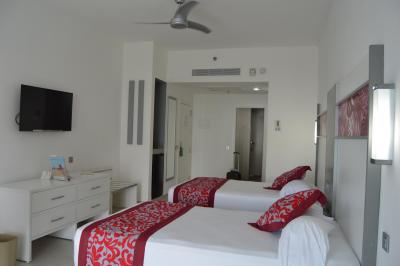 Pokoje jsou velmi moderně zařízené, všechny mají balkon nebo terasu a vzhledem k tomu, jak je hotel postaven má většina z nich i výhled na moře. Nejvíce jsme s kamarádkou ocenily ,,minibar" spíše bych řekla ,,maxibar" viz foto. Trezor, tv, telefon a klimatizace jsou samozřejmostí.