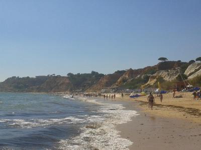 Městečko Olhos de Agua je hezké, ale po dvou dnech už není co nového objevovat. Pěšky je to do Albufeiry daleko. Mimo pláž Falesia, která je k hotelu nejblíž, jsou v městečku ještě další dvě menší pláže, jedna dostupná po dřevěných schodech a druhá v nákupním centru města. která byla vždy plně obsazena.