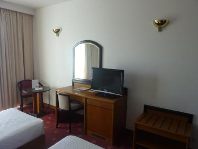 V tomto hotelu jsme byli ubytováni ve 2 lůžkovém pokoji s balkónem a výhledem na moře. Pokoje byly vybavené šatní skříní, klimatizací, fénem, telefonem, TV a trezorem. Každý pokoj měl vlastní koupelnu s vanou a sprchou a vysoušečem vlasů.