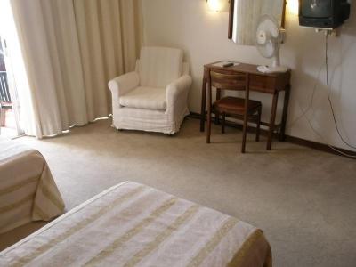 Starší nábytek, základní vybavení - pokoj + koupelna s WC + některé pokoje balkon s posezením. Pokoje vypadaly ale čistě a celkem i prostorně. Možnost 2 až 4 osob na pokoji. Kabelová TV, hudební kanál, přímý telefon, trezor za poplatek. celkem má hotel 28 pokojů.