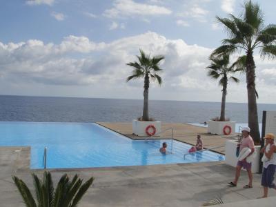 2 krásné bazény s mořskou vodou, 2 brouzdaliště, sladkovodní bazén v areálu SPA. Do moře musíte po žebříku, ale s tím se musí na Madeiře počítat. Lehátka v ceně, slunečníky, osušky - bezvadný servis. Ochotný personál.