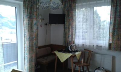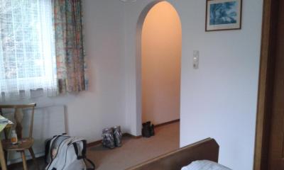 Dům postavený v roce 1972 a tomu odpovídající vybavení - vše v klasickém alpském stylu, vyřezávané dřevo, pokoje s vanou v koupelně. Vše perfektně čisté, žádná plíseň v koupelně, všechny rohy a plochy vymydlené - snad to bylo vánočním úklidem? Paní domácí milá, ochotná, wifi všude zadarmo. Lyžárna.