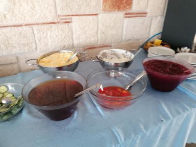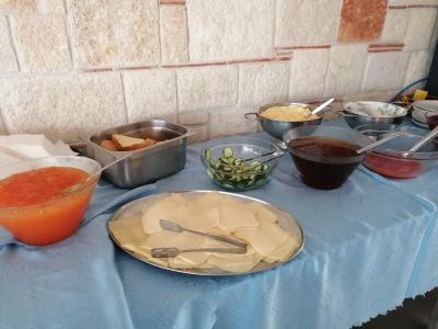 Máme polopenzí - nevyplatí se! Za 500 Kč dostat každý den na snídani džus, vejce na tvdo, věku, máslo, jogurt, dzemy, okurku, salám se cca 70% masa, plátky sýra, měkké rajce, cikorku místo kávy a stejně barvy čaj-to chce silný žaludek. Jednou měli tolik drzosti, že nám dali spálené topinky! Na večeři žádný výběr - jednou špagety s mletým masem a trochou zeleniny,2x byla čtvrtka kuřete s ryzi... Pak zapečené brambory... Do města daleko, personál není ochoten vyjít vstříc lidem, kteří se tak daleko v tom vedru 1500 m nedostanou. Zavolejte si taxi! To ale není vždy k dispozici.