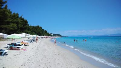 Přístup k moři byl po velmi prudkém svahu. Pláž písčitá,slunečníky a lehátka tam hotel nemá, jak bylo uvedeno v katalogu. Zapůjčuje pouze sedáky a slunečník musí se nosit sem a tam. Moře je velmi kamenité, doporučujeme boty do vody.Dá se najít písčitá pláž je to trochu dál na levou stranu ale stojí to zato je tam klid a super přístup do vody ale slunečníky a lehátka za poplatek 8euro na den.