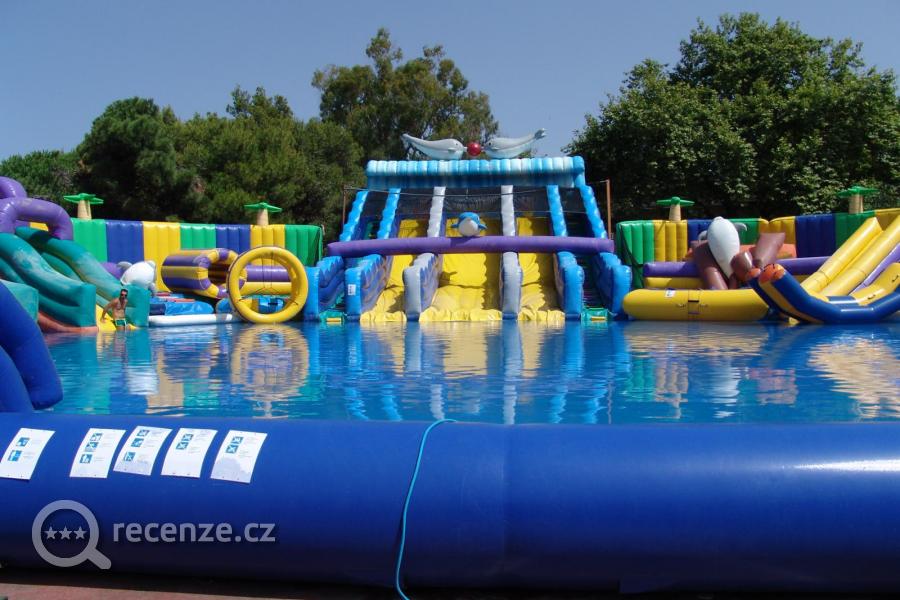 Bezprostřední okolí hotelu slušně udržované. Hezké zahrady i možnost sportovního vyžití.Nafukovací hrad-bazén pro děti (8 euro na den)