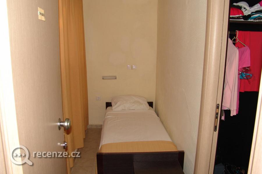 Rodinný pokoj s výhledem na moře,byl pouze přepažený kus konce chodby,takže vznikl zatuchlý "pokoj" o velikosti asi 3 x 1.2 m.Na moře bylo vidět z části balkonu,jinak jsme koukali na oprýskaný bungalow před námi.Takže ne ubytování v hotelu,ale ve starším bungalowu.