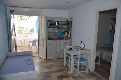 Ostatní jednopokojová studia a dvoupokojové apartmány mají balkony s výhledem na moře. Pokoje jsou částečně vybydlené, ale útulné a vždy čisté. Postele jsou poměrně tvrdé s pružinovými matracemi. Dveře do koupelny se nedovíraly. Voda ve sprše měla slabý průtok a občas tekla jen vlažná. Přes drobné nedostatky se nám ubytování v apartmánu č. 11 líbilo a byli jsme spokojeni.