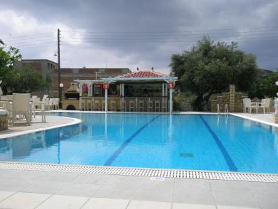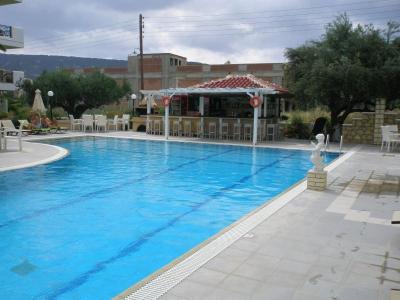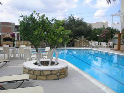 Vstupní malá hala s recepcí, posezením, SAT TV a internet koutkem (internet za poplatek). Po vstupu do haly hned napravo menší bar a za ním menší restaurace, kde se podávají snídaně. Před vstupem je menší terasa s posezením. Venku bazén s lehátky a slunečníky zdarma a pool bar. K dispozici také jeden výtah. Hotel je v provozu od dubna do října.
