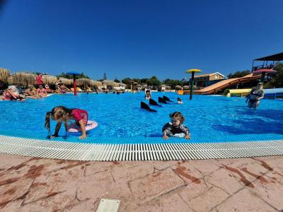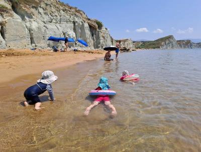 Pláž písčitá, moře teplé a mělké, pro děti bezpečné.