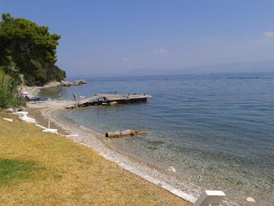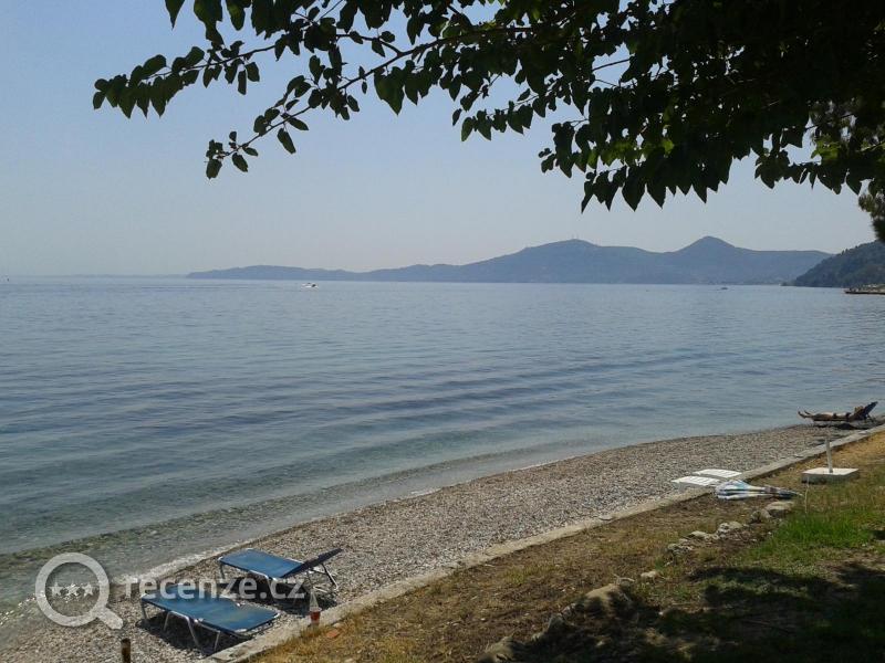 Jen hoteloví hosté, dostatek lehátek - možno přenést na místo podle svého gusta, pláž má navezené kamínky, lepší jsou boty do vody. Na dně pole mořské trávy, čisté a rovné moře, výhled na pevninu.