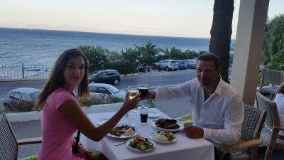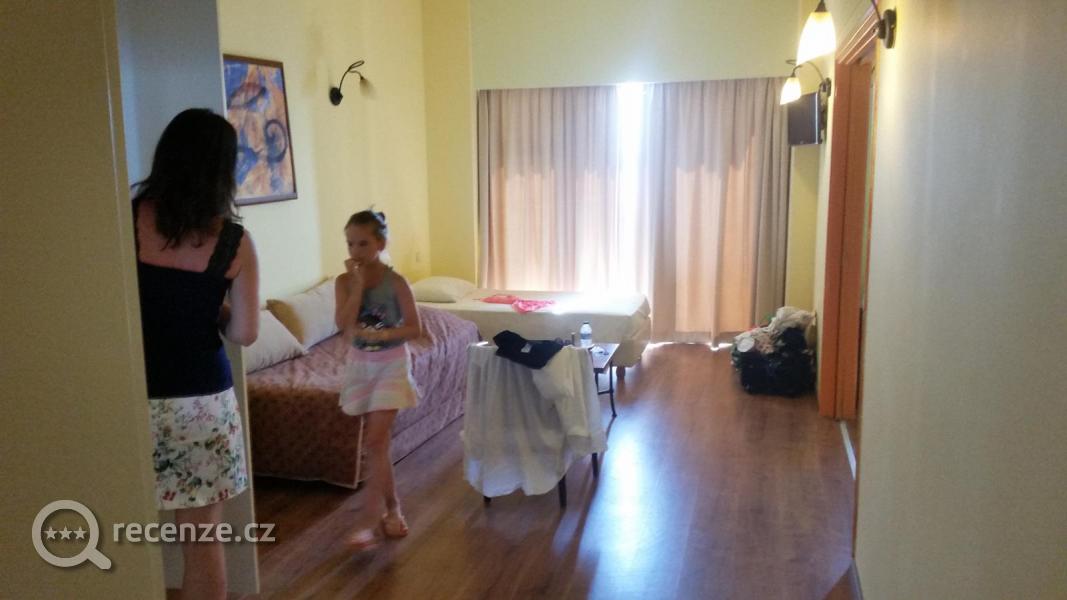 Z letiště k hotelu to je cca30 minut klimatizovaným autobusem. Na uvítanou je v sálu recepce nachystane obcerstveni. Všude kolem usměvavý personál. Po předložení dokladu o zaplacení jsme dostali hned klice a šli jsme se ubytovat (3 dospělí a 1 dítě ). Pokoj(apartman) byl čistý prostorný s terasou a výhledem na moře. 1 pokoj dvě postele druhý pokoj jedna manželská .dalo se oddělit posuvnými dveřmi. Každý den úklid pokojů a výměna ručníků. Vytřena podlaha, převlečene prostěradlo pokud na něm byla nějaká šmouha. Jídelna se nachází vedle recepce.hotel má 6 páteř. Jsou tu dva výtahy. Výtahem se dá sjet i do patra -1 a průchodem pod silnici projít na pláž. Tam se nachází bar s obrovským výběrem tvrdého alkoholu ,pivo,víno, nealko nápoje ,ledová káva, káva.zmrzlina, ovoce,zelenina, odpoledne palačinky s nutelou, gyros v tortile, sendviče atd...vše čerstvé připravené přímo před vámi. Alkohol má 30% . Pil jsem jen vodku a tequilu. Ideální je barmanovi říci druh alkoholu bez skloňování jinak nerozumí. Příklad : tequila ony - dostanete tequilu s ledem . Led se dává do všeho. Anebo si vyberete míchané napoje z nápojového lístků .tohle všechno je do pulnoci zdarma .pak vedsinou zavírají anebo to mají zpoplatněno . Panák - 2.30 € míchaný nápoj 5.50€.