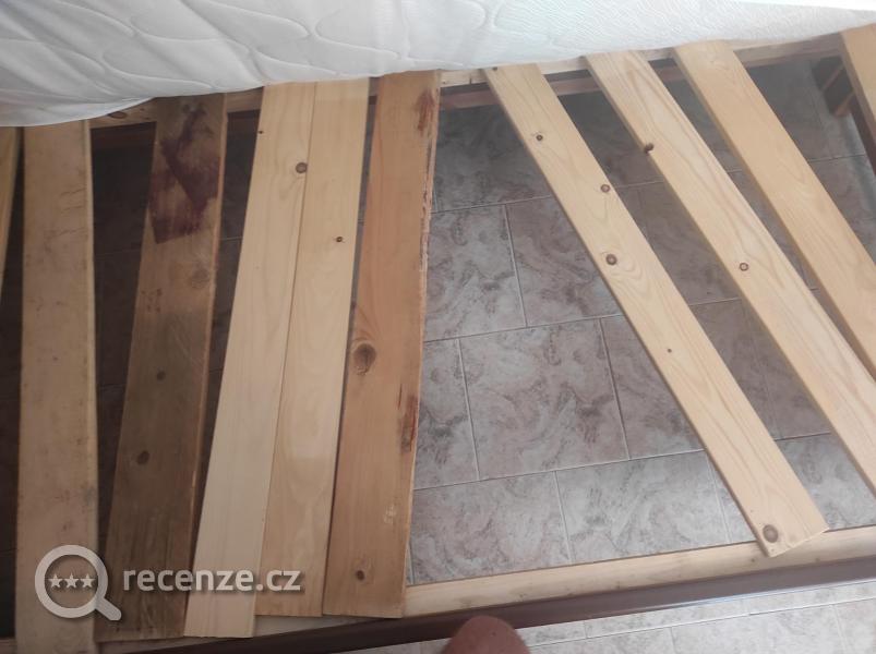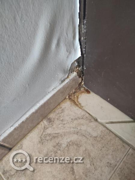 Plíseň ve sprše, místo roštu pod postelí prkna, z matrace trčely pružiny. Balkon nad rampou zásobování, hluk již od 6.00 hod.