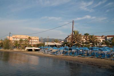 pláž z kraje kamenitá, takže jedině boty do vody. Ale z mola se dá krásně vlézt do moře, tam je písek, takže žádný problém. Lehátka na pláži se vždycky dá najít, i když v sezóně to chce brzy ráno lehátko zabrat. asi 100m od hotelu další písčitá pláž, jen ty chaluhy tam jsou všude, to vidím jako malinko negativum. U bazénu vždycky lehátko najdete, naprostá pohoda. Bazény jsou dva, ten u hlavní budovy nám přišel sympatičtější. v zadní části komplexu byl sice novější, ale spíše německý, jelikož okolní budovy patří německé cestovce :)