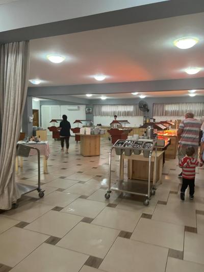 Stále se opakující, přesolená jídla, zkyslé brambory, nahnilé ovoce. Je to pouze kvantita a nikoliv kvalita. Neoznačené mísy čehosi, osvícené červenou barvou, tak ani nepoznáte, oč jde. Hlady neumřete, ale určitě to není žádná gastronomie. Jídlo je povolené si brát na pokoj, alobal je k dispozici.