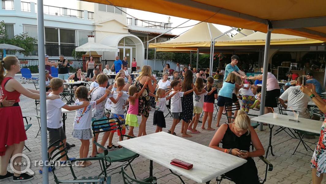 Se stravou jsme byli naprosto spokojeni, lze si vybrat ze široké škály jídel, a i když se většina opakuje, každý den přidali nějaké nové jídlo ze studené či teplé kuchyně. Nechápeme kritické připomínky v některých recenzích! Vždy lze z nabídky vybrat něco, co odpovídá chuťovým požadavkům. Nabídka mohla uspokojit jak vegetariány, tak masožrouty, milovníci dezertů si také vždy něco mohli vybrat (každý den meloun, někdy jablka či nektarinky, minimálně dva druhy dezertů). A k nim vždy i kávu, zmrzlinu, víno či džus. Nabídku asi nelze srovnávat s 5* hotely, ale v Sea Garden vše vyvažoval milý a pozorný přístup personálu, dostatek soukromí a klidu při výběru jídel. Navíc i během dopoledne a odpoledne na Pool baru jedlíci vždy našli něco na zub, mohli se zchladit zmrzlinou, dát si nápoje dle chuti bez omezení (koktejly se samozřejmě platí ). A hlavně se můžete nechat bavit a nakazit se optimismem nezapomenutelného barmana Spirose, kterého skvělá nálada neopouštěla ani v pozdních nočních hodinách.