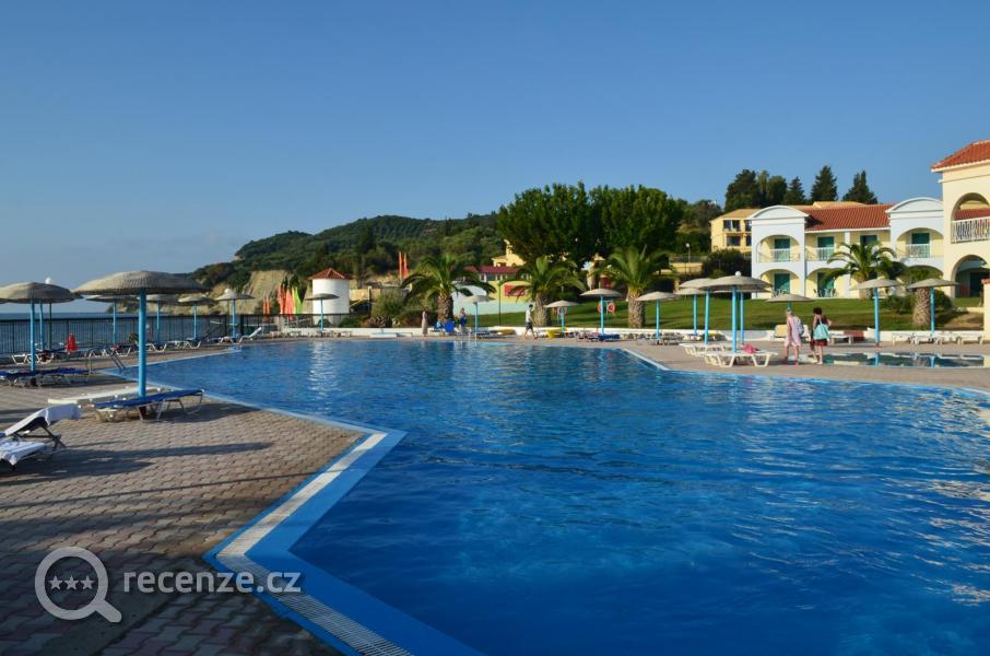 Pláž se nám nelíbila už od počáku, ale po návštěvě pláží v Kavosu jsme změnili názor. Na těch byl opravdu nepořádek, ale to je vina anglických turistů, kterým zřejmě to, že se váli mezi plechovkami a vajgly nevadilo a vesele se slunili dál. Hotelová pláž je ideální pro neplavce, my jsme ji využívali, hráli jsme vodní tenis. Kousek od slunečníků byl písčitý vstup do moře. Nebyl problém nalést příjemné místo s písčitým dnem. Asi třicet minut přes kopec je nádherná a dlouhá pláž se slunečníky a lehátky za poplatek, kde místní provozují i bar. Za 2,5 Euro jste měli nárok na lehátko a drink. Jako další obrovské plus hodnotím zázemí vodních sportů Asprokavos watesports, které provozují Řekové hned vedle hotelové pláže. Organizují výlety do Modré Laguny, na Ostrovy Paxos a Antipaxos a nabízejí další vodní aktivity. Sejdete po schůdcích od hotelového bazénu a můžete se nalodit na vyplout.