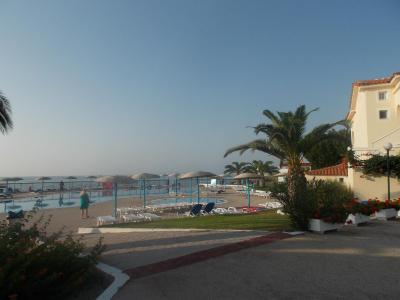 pláž při hotely bola uzučká,mala,navezený piesok,voda bola na daleko mala ,nedalo sa ani zaplavat .....ale sme chodili na výlety lodou kde boli pláže a more úžasne určite doporučujem íst na ostrovy PAXOS A ANTIPAXOS. Nádherná pláž je od hotel asi 45 minut cesty cez olivový háj,Určie to stojí zato ,Z hotela si možete objednat balíček a možete ist na celý den