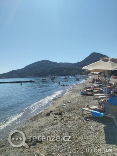Pláž oblázková, v moři písek, voda průzračná. Kdo má citlivější chodidla, tak vzít botičky do vodičky. V září zde panuje klid, pláže nejsou rozlehlé, lehátka jen ve dvou řadách, bylo to fajn.