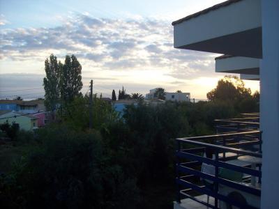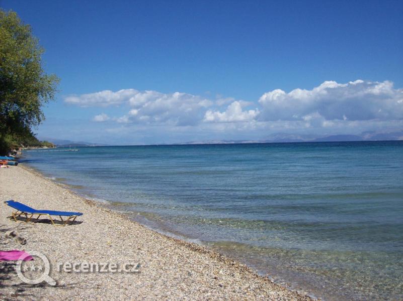 Pláž blízko, 200 m, délka asi 1 km, hodně lehátek a slunečníků, taverny. U pláže i obchod, přijatelné ceny. Pár míst k ležení bez lehátek. Pláž je hezká, pésečná, velmi pozvolný vstup do moře, hloubka cca po 300 m, na kraji pláže kamínky, není nudistická. možnost půjčení šlapadel pro až 5 lidí, 10 E/hod. K pronájmu menší výletní loď na výlety pro 2-10 lidí. Možnost tahání za člunem na padáku. Několik mol. Voda v září velice teplá, okolo 26 st.