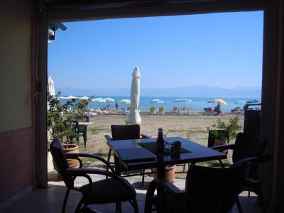 30m od našeho ubytování. Koupit se tam dalo snad vše. Od jídla, pití, drogerie až po trička a nafukovací lehátka. Také repelenty . Na večeře jsme chodili buď do Rody, která je podél moře procházkou asi 10minut a nebo do Acharavi, procházkou podél moře asi 20min. daleko. Všude je spousta taveren, kde se dobře najíte. A pokud se nám nechtělo nikam jít, tak jsme zůstali u našeho hotýlku kde báječně vařili a byla i příjemná obsluha.