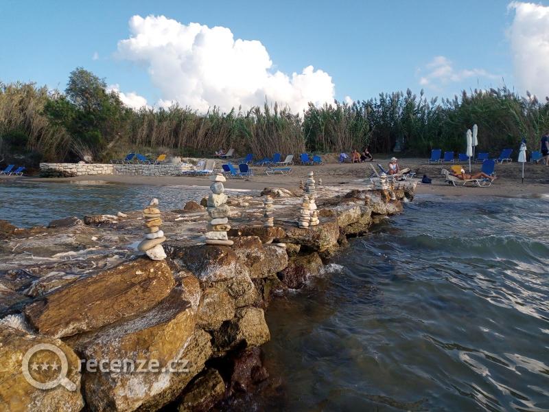 Pláž byla malá, každý den čištěná od mořské trávy. Více než polovina byla písčitá, část oblázková a malý kousek s velkými kameny. Lehátka a pár slunečníků bylo k dispozici bezplatně, pláž patřila k hotelu. Ocenili jsme právě menší rozlohu pláže, nebyla přecpaná turisty. Moře bylo čisté, teplé a mělčina sahala cca 100m do moře.